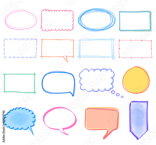 Set of speech bubble quote icons. Flat vector design, colorful watercolor speech bubble set