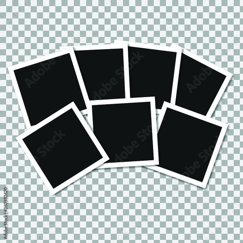 Set of square vector photo frames. Collage of realistic frames isolated on transparent background. Template design. Vector illustration