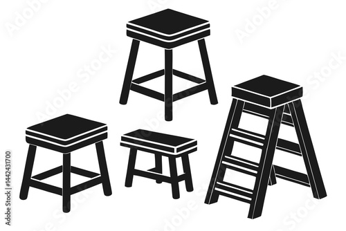 set of Step Stool icon vector silhouette illustration isolated on white background