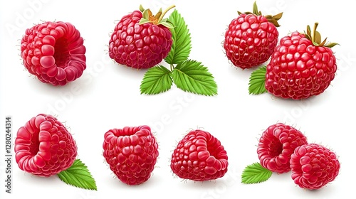 Set of tasty sweet ripe raspberries