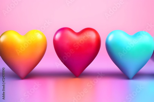 Set of three hearts in different colors, on gradient background. Valentine's Day. generated AI