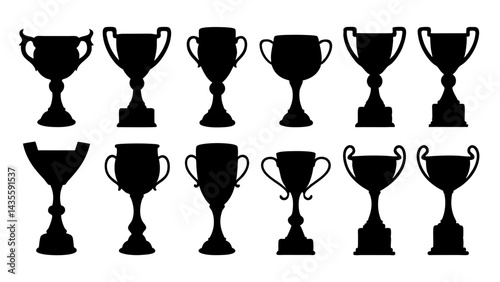 set of trophy award silhouette vector on tranparent background