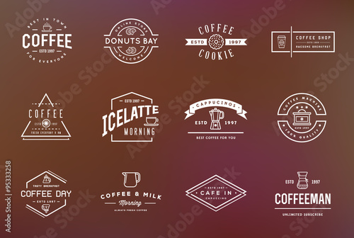Set of Vector Coffee Logotype Templates and Coffee Accessories Illustration with Incorporated Icons with Fictitious Names
