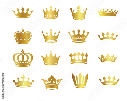 set of vector Illustration of Golden Crown Logo Sign