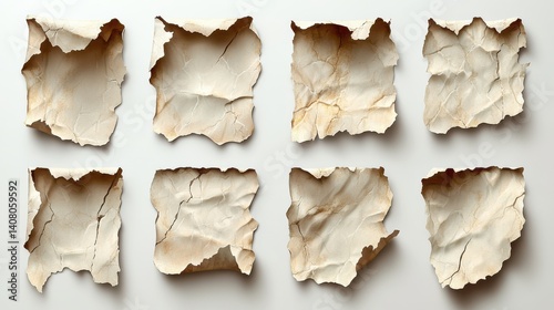 set of vector realistic illustrations of a torn sheet of paper from a workbook,shadow isolated,stock photo