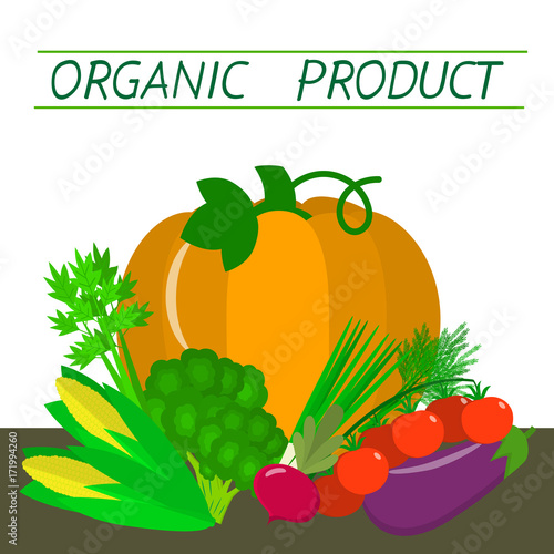 Set of vegetables. Organic vegetarian healthy food isolated on white background. Vector.