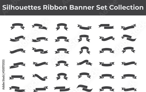 Set of Vintage black Ribbon Banners vector illustration isolate on white background