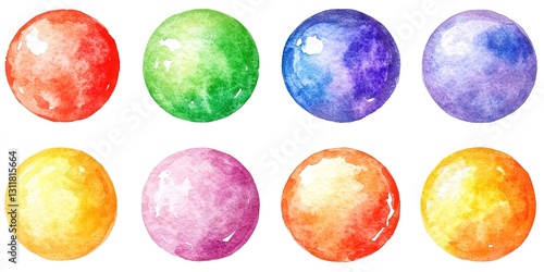 Set of watercolor circles. Hand painted abstract texture backgrounds. Hand drawn illustration.