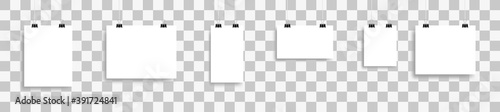Set of white realistic poster hanging, poster mockup on isolated background vector illustration