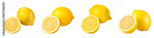 Set of whole lemon and slice, isolated on transparent background