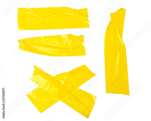 Set of yellow tapes on white background