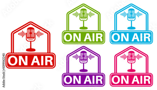 set on air sign icon. Live broadcast symbol sign sticker label template design vector illustration