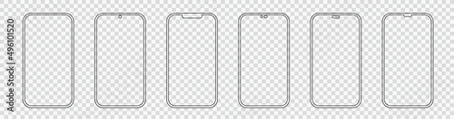 Set realistic smartphone blank screen, phone mockup isolated on transparent background. Template for infographics or presentation UI design interface.