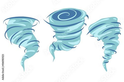Set tornado line art shape Vector Illustration. Hurricane hand drawn design cartoon element template collection