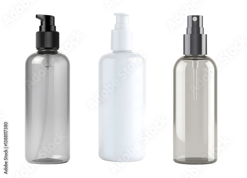 Set Transparent and White Cosmetic Pump and Spray Bottles – High-Quality Mockup