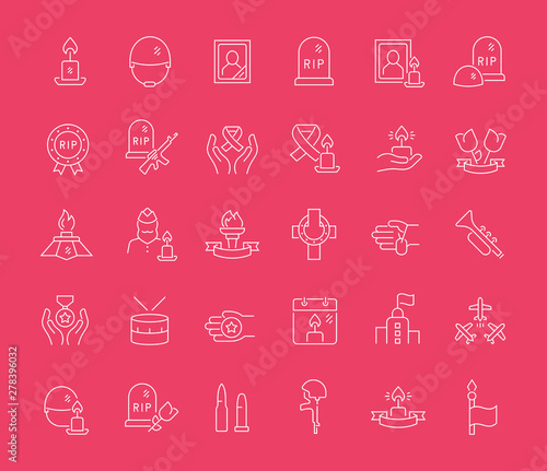 Set Vector Line Icons of Memorial Day