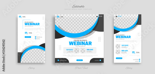 Set webinar business social media post and story template with yellow blue and white color background for ads promotions