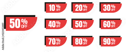 Sets of percent sale tags and banner. 10% 20% 30% 40% 50% 60% 70% 80% 90% set of discount and special sale offer vector illustration.
