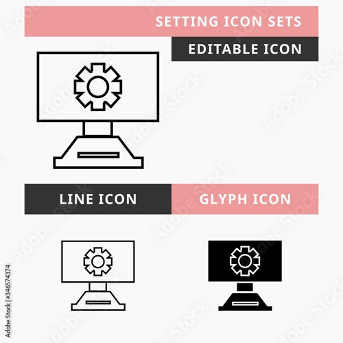 Setting icons set vector design, modern editable line and glyph icon, black color and isolated