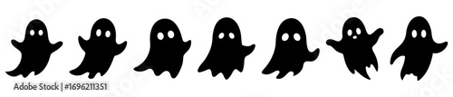 Seven spooky silhouettes of floating ghosts for Halloween vector illustration art