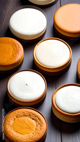Several round cheesecakes, light and dark