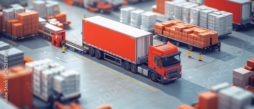Several trucks are loading and unloading containers in a bustling logistics facility filled with shipments of various sizes in broad daylight