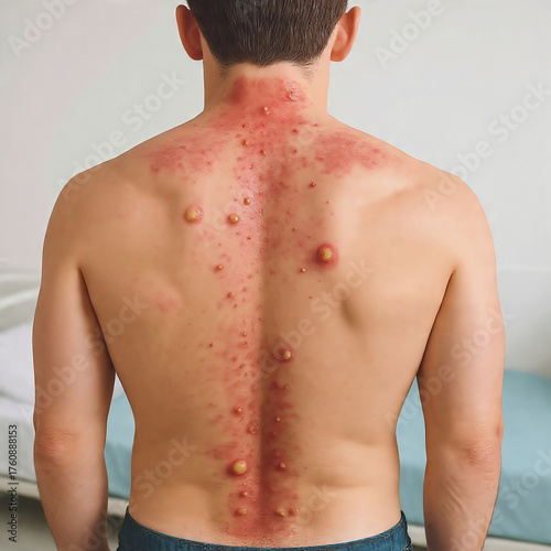 Severe acne on a man's back