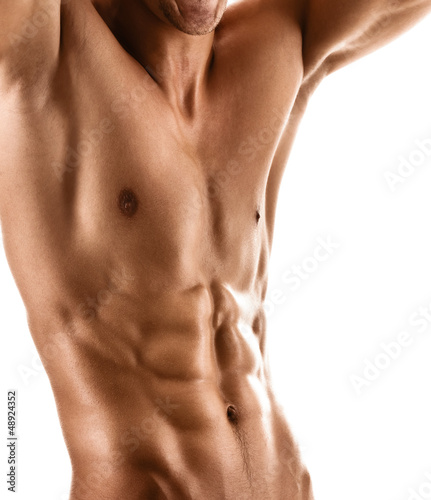 Sexy muscular body of athletic man, isolated on white