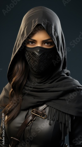 Shadow fighter ninja woman, a master of disguise, covert operations and strategic warfare, blending into her surroundings her objectives with expertise.
