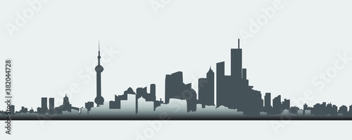 Shadow of City panoramic skyline view. Urban architectural buildings. Cityscape sketch.Vector EPS 10.