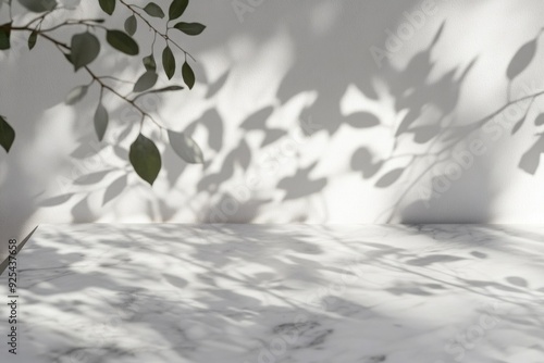 Shadows of leaves on white marble surface