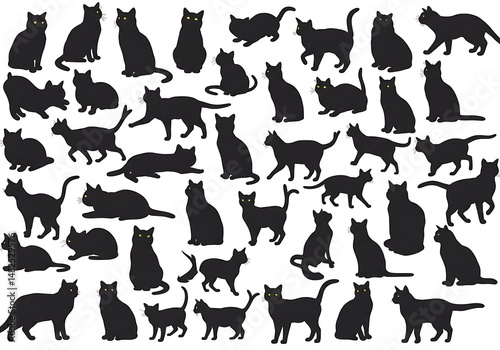 Shadowy Feline Ballet: A Black Cat Silhouette Collection