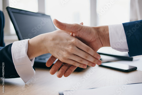 shaking hands office successful deal work business