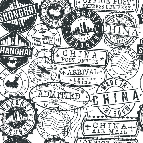 Shanghai China Stamps. City Stamp Vector Art. Postal Passport Travel. Design Set Pattern.