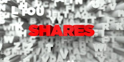 SHARES - Red text on typography background - 3D rendered royalty free stock image. This image can be used for an online website banner ad or a print postcard.