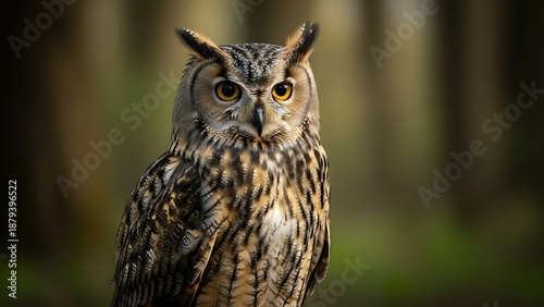 Sharp-eyed Ornate Owl with Bright Eyes in Forest Setting