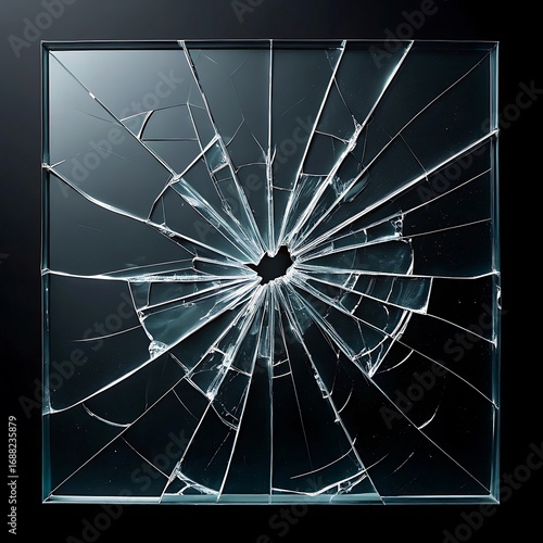 Shattered glass surface reflecting light in a starburst pattern with jagged edges
