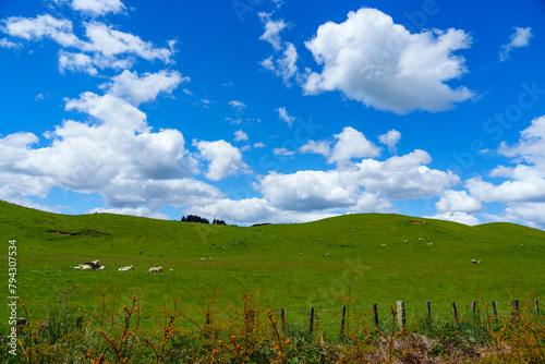 sheep in the farm under the blue sky with clouds