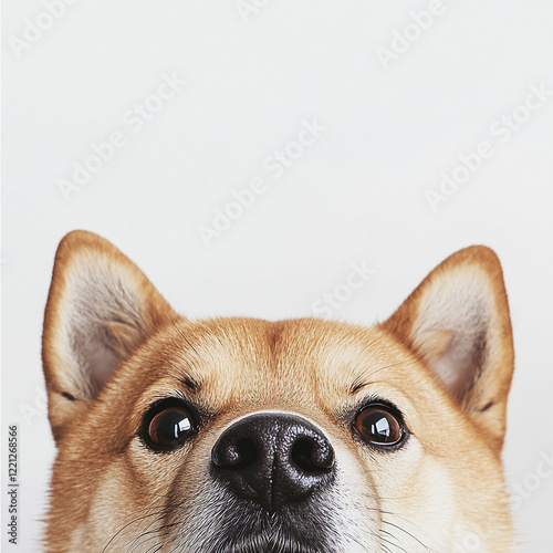Shiba Inu dog face close-up on a white background, perfect for mockup or text overlay