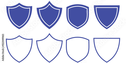 Shield icon set. Protect shield security line icons. Shield icon. Heraldic shield set. Blue knight award contours and linear signs. Protect shapes silhouette. Vector illustration