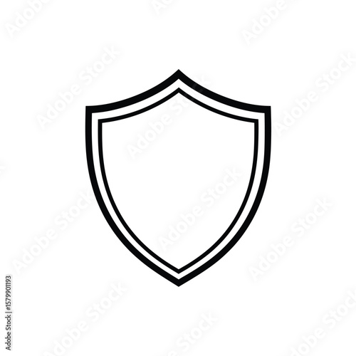 Shield Icon with Black Outline on White Background, Security Element