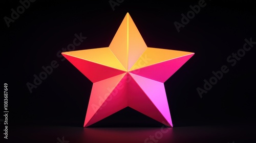 Shimmering 3D Crystal Star Abstract Pink Orange Geometric Design Black Background