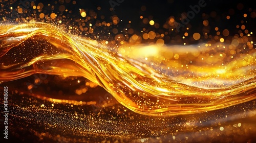 Shimmering Golden Waves with Sparkling Particles Captured in Realistic Photography