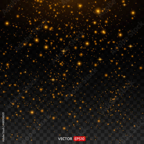Shining star, the sun particles and sparks with a highlight effect, color bokeh lights glitter and sequins. On transparent background. Set. Vector, EPS10