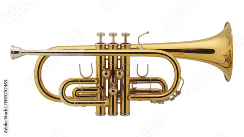 Shiny brass trumpet on white background instrument