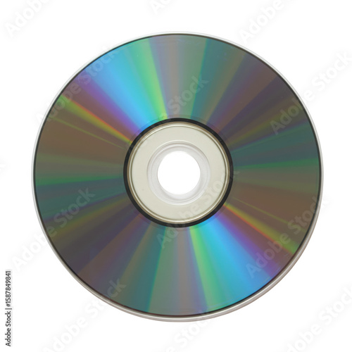 Shiny compact disc with rainbow reflections isolated on transparent background