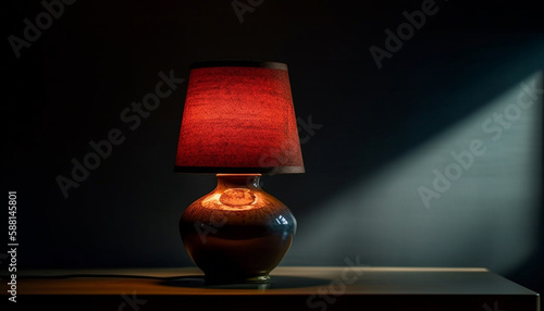 Shiny glass lamp illuminates modern bedroom decor elegantly generated by AI