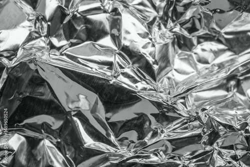 Shiny metal silver gray foil leaf crumpled texture background