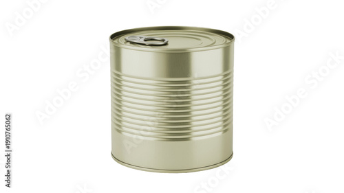 Shiny metal tin can with open lid on transparent background