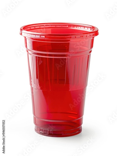 Shiny Red Plastic Cup - Disposable Object in Isolated Setting
